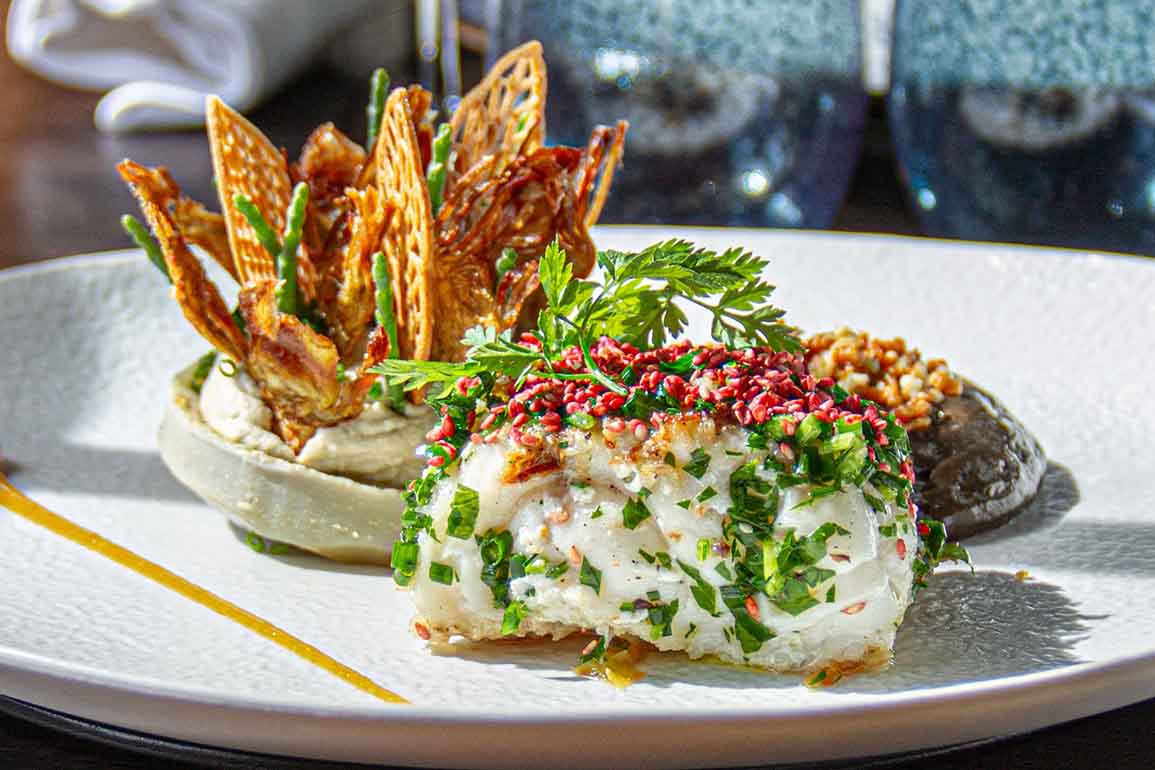 - Cabilan grillé au charbon de bois sauce aux agrumes : le poisson est tendre, et l’acidité et la douceur des agrumes neutralisent parfaitement la fraîcheur des fruits de mer.